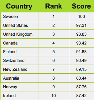 • Sweden tops the Web Index, followed by the United States and United Kingdom