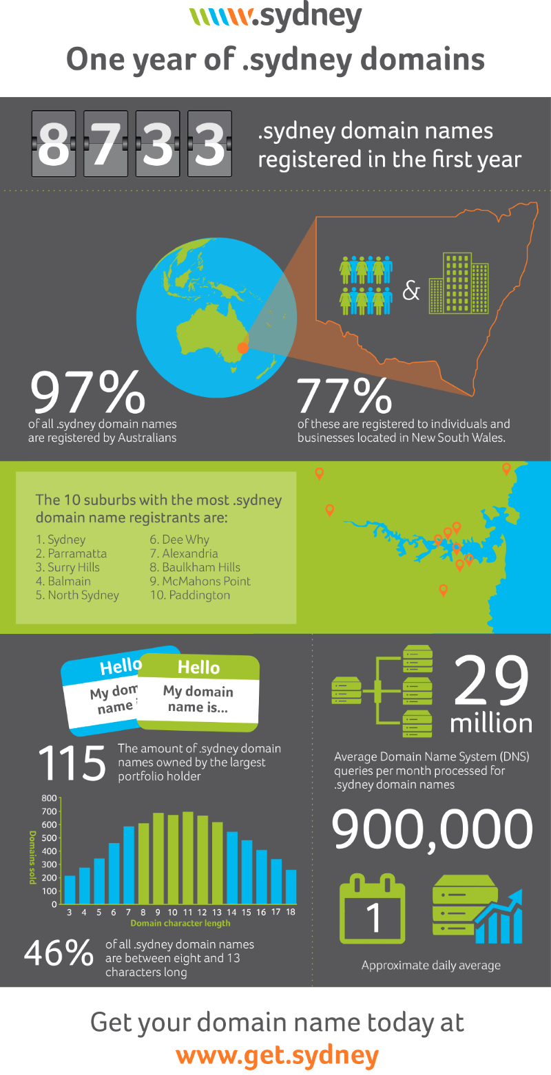 “We are pleased with the consumer demand for .sydney domain names to date and look forward to seeing proud Sydneysiders and businesses serving the state warmly embracing the namespace as awareness continues to grow.”