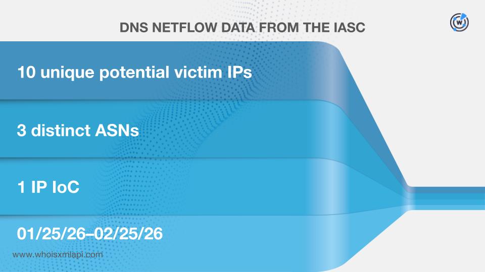 First, sample network data from the IASC showed that 10 unique IP addresses possibly owned by victims under three distinct ASNs communicated with one of the IP addresses tagged as IoCs between 25 January and 25 February 2026