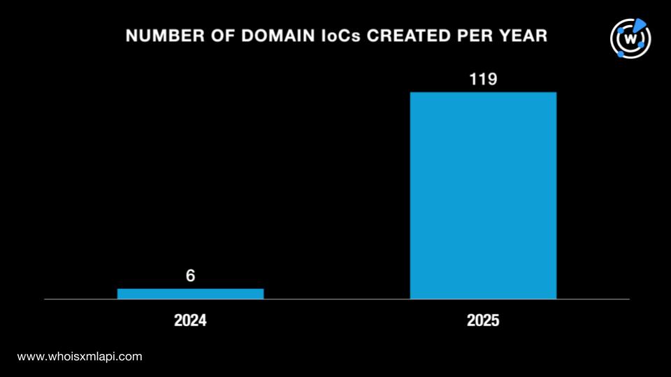 We began our analysis by looking deeper into the IoCs by querying the 129 domains tagged as IoCs on Bulk WHOIS API. We discovered that 125 of them had current WHOIS records. Further analysis of the 125 domains showed that:
