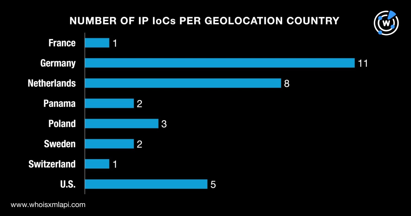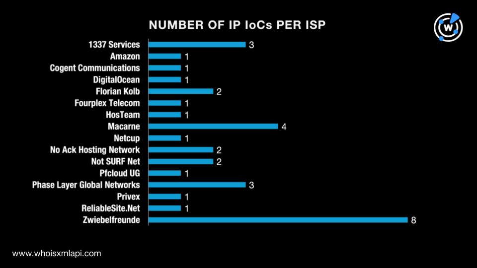 We then queried the 33 IP addresses identified as IoCs on Bulk IP Geolocation Lookup and discovered that:
