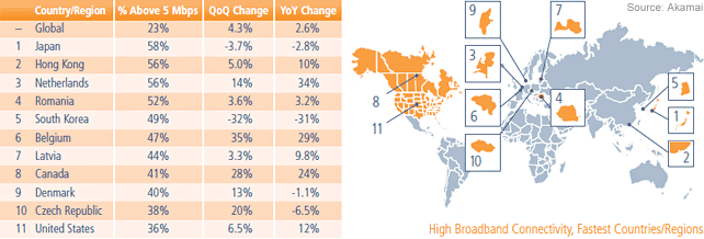 In the fourth quarter of 2010, a mobile provider in Greece (GR-1) had the highest average connection speed, at just over 4.5 Mbps, according to Akamai’s latest State of the Internet Report. “The mobile providers in Slovakia and Russia that had previously been reported as having the highest average connection speeds were removed from consideration in the fourth quarter, as further research determined that their autonomous systems carried a mix of traffic from fixed and mobile connections.”