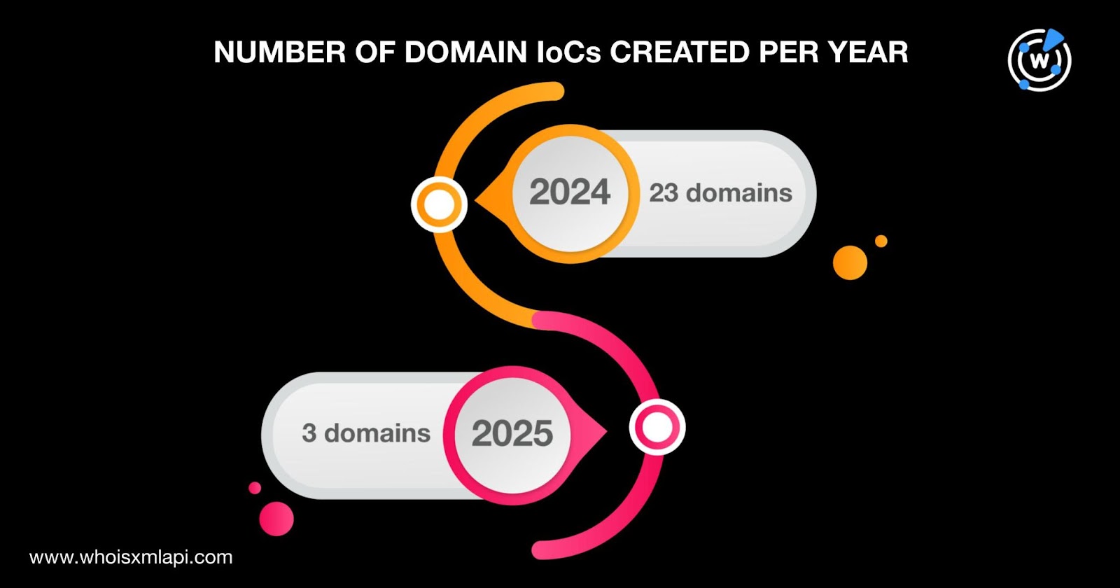 The report identified 54 indicators of compromise (IoCs) comprising 27 domains and 27 IP addresses, which WhoisXML API expanded. Our analysis led to the discovery of other potentially connected artifacts, namely: