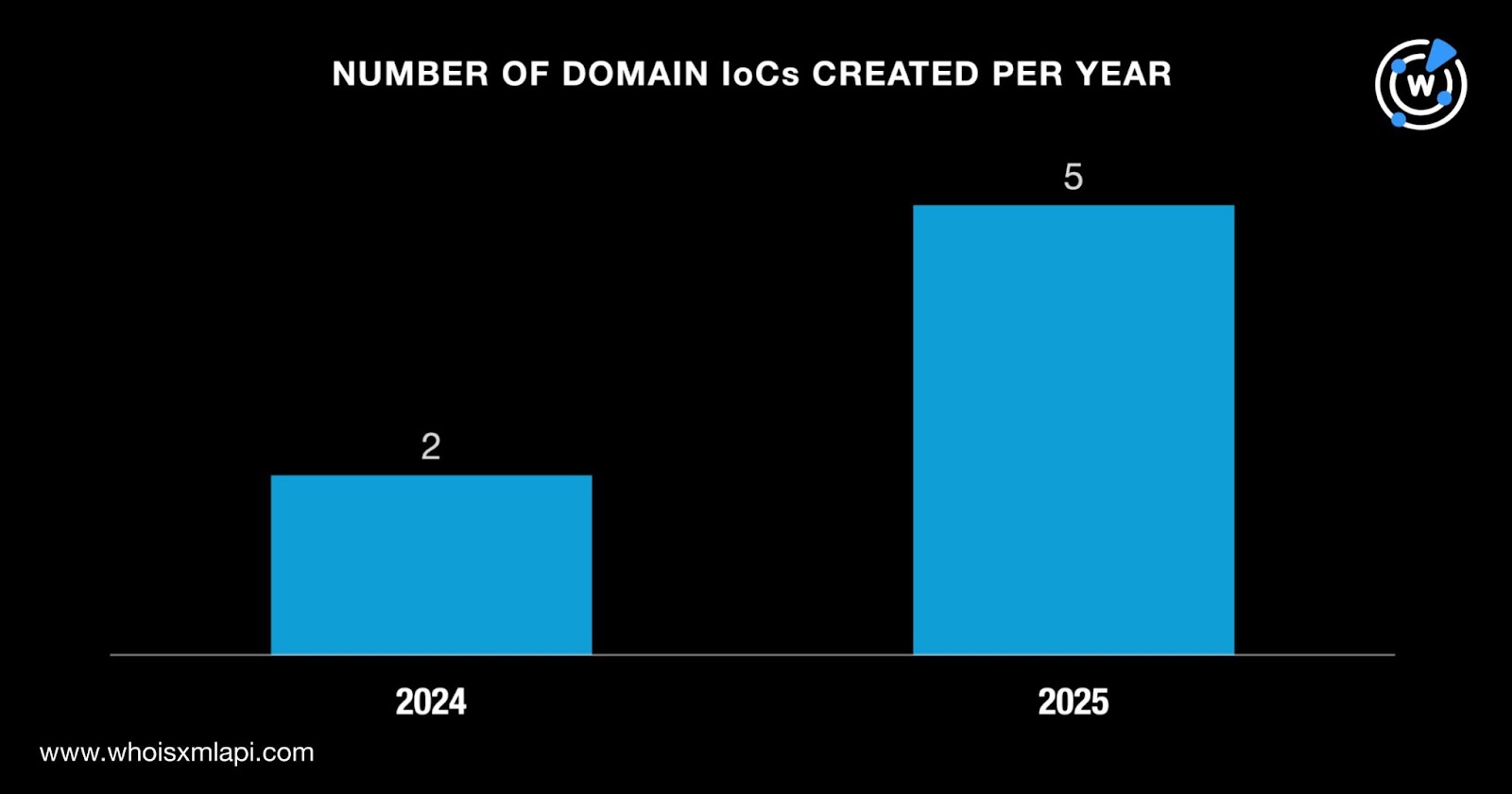 After that, we queried the seven domains identified as IoCs on WHOIS API and discovered that: