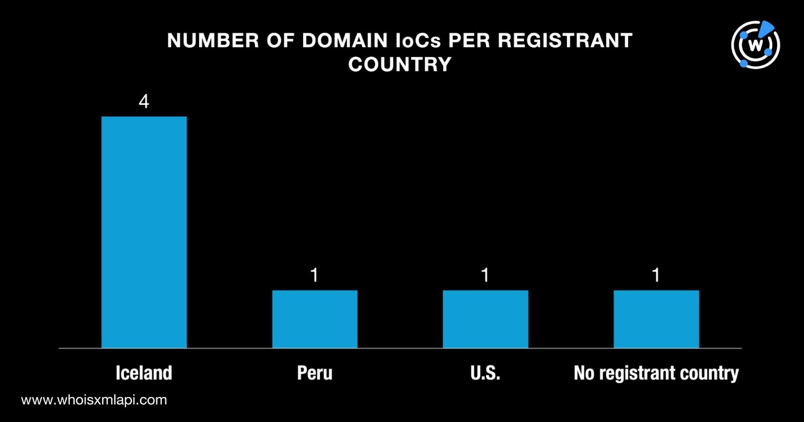 While one did not have a registrant country on record, four were registered in Iceland. One domain each, meanwhile, was registered in Peru and the U.S.