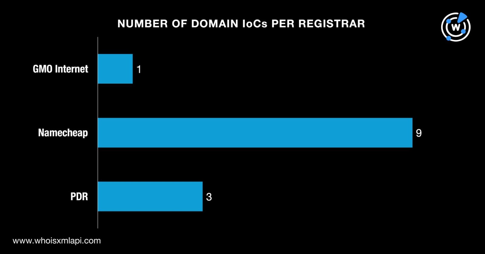 Then, we queried the 13 domains identified as IoCs on WHOIS API and found out that: