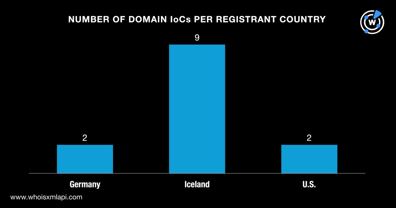 They were registered in three countries topped by Iceland, which accounted for nine domains. Two domains each, meanwhile, were registered in Germany and the U.S.