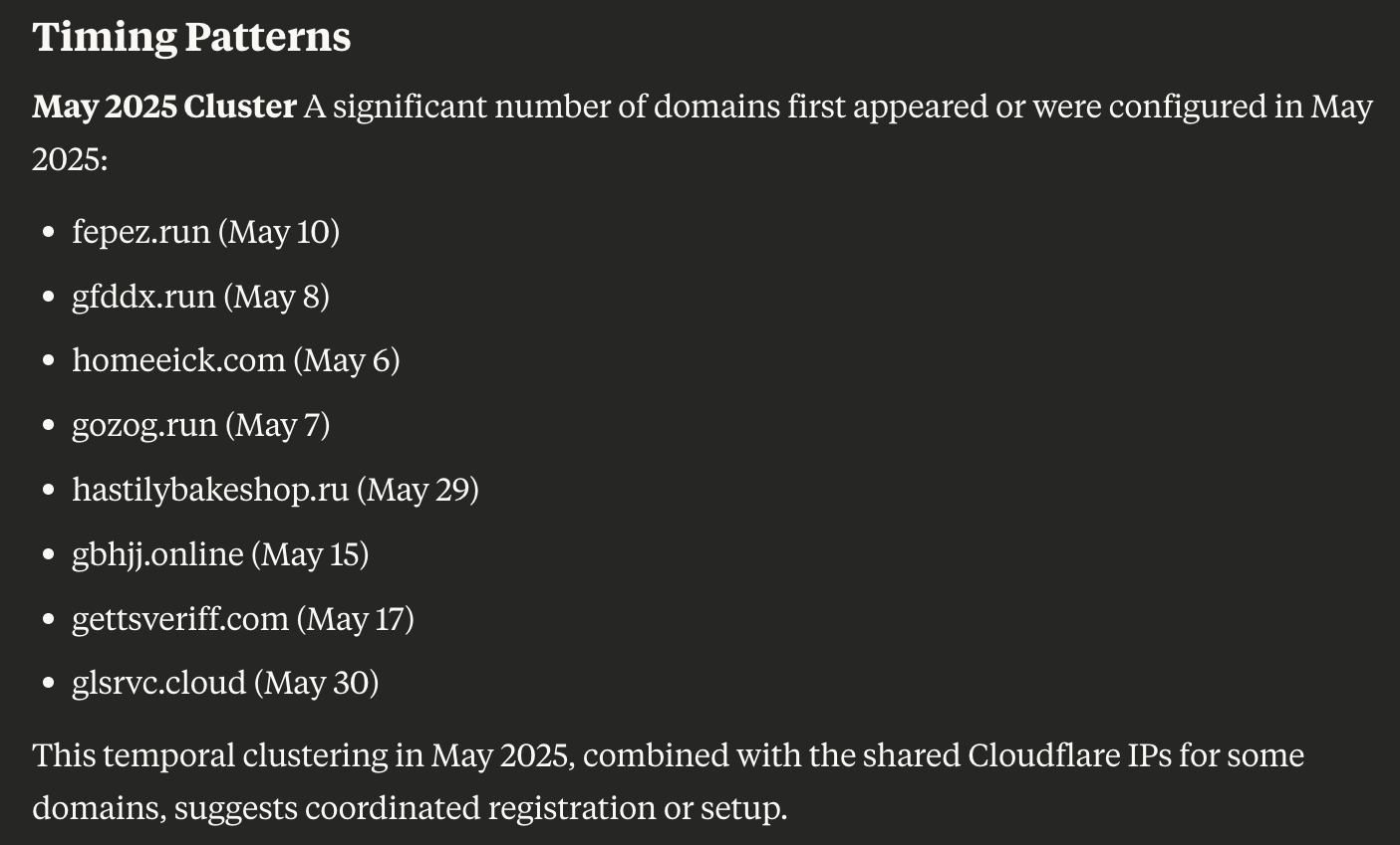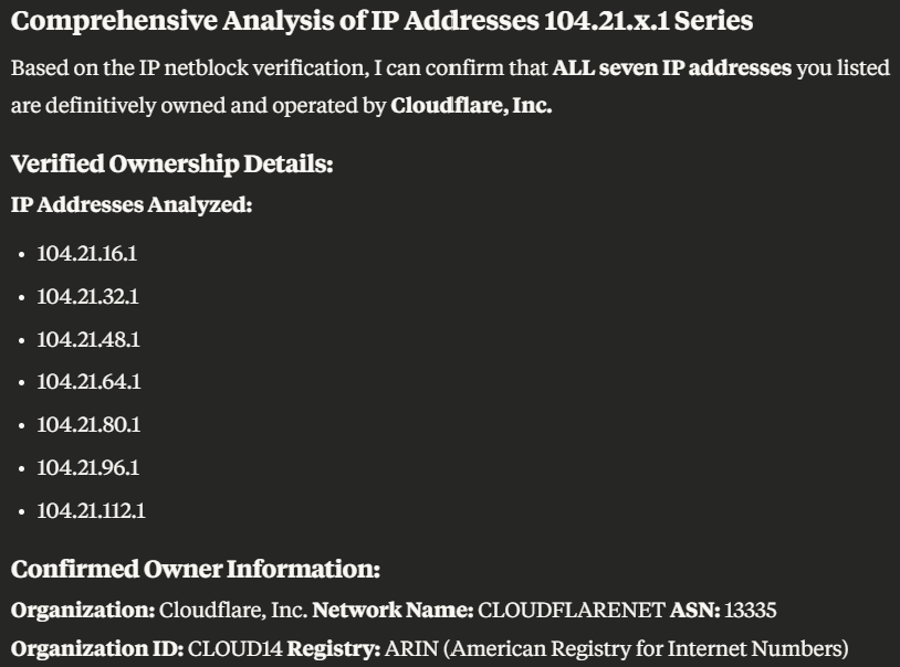 On top of that, eight of the IP addresses, while not necessarily all Cloudflare owned, were first configured or first appeared in May 2025.