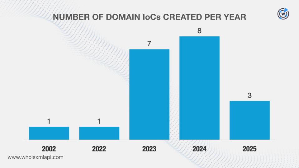 It is also interesting to note that many domains, five to be exact, first resolved to IP addresses sometime in 2023.