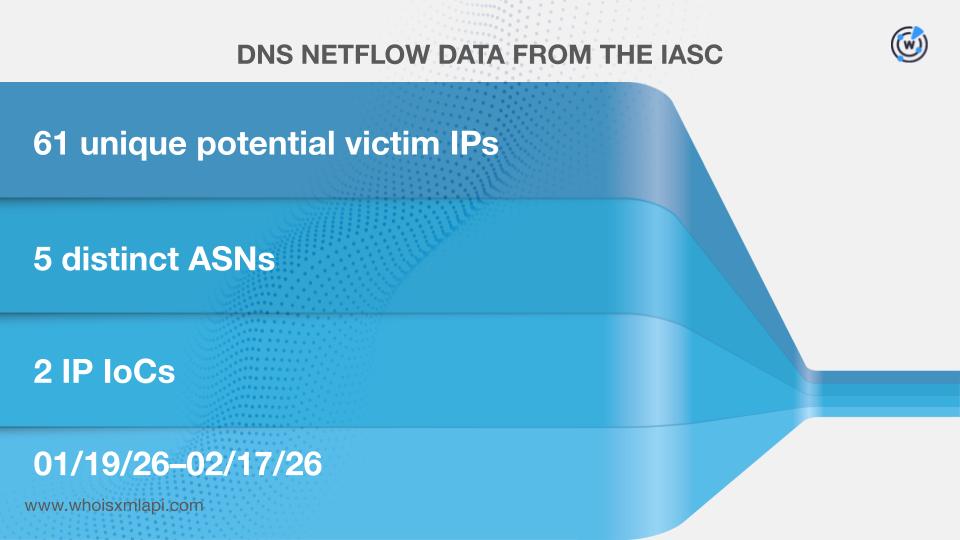 First off, sample network data from the IASC revealed that 61 unique potential victim IP addresses communicated with two of the IP addresses tagged as IoCs between 19 January and 17 of February 2026. The victim IP addresses fell under five distinct ASNs.