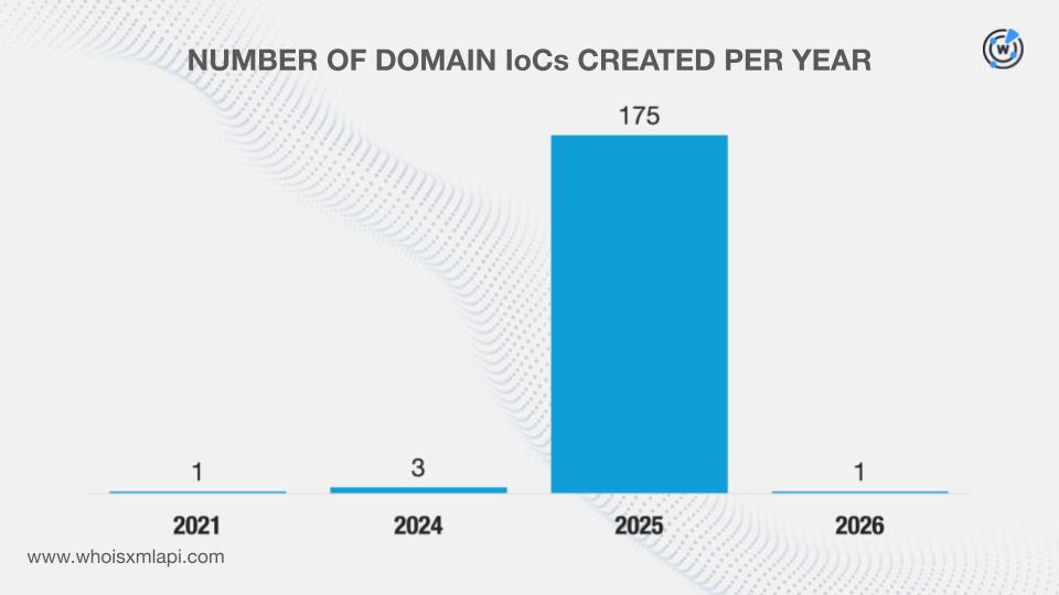 A closer look at the historical domain-to-IP resolutions also showed that a majority of the domains categorized as IoCs, 148 to be exact, first recorded resolutions in 2025.