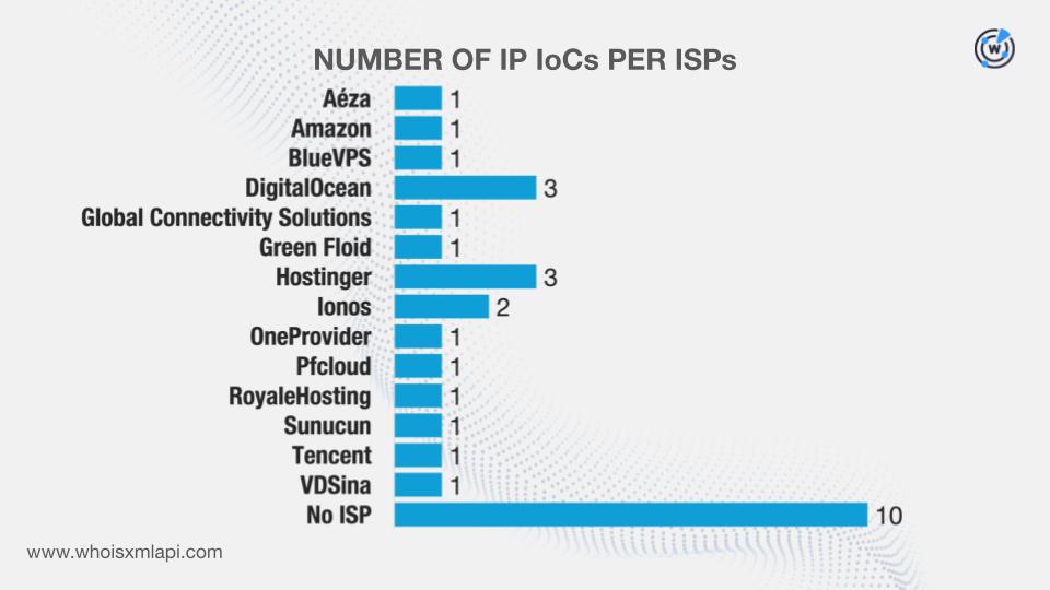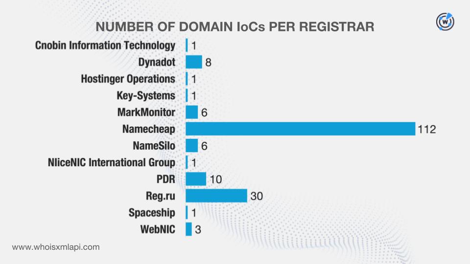 The researchers identified several network IoCs in their report. After extracting domains from the subdomains tagged as IoCs and excluding those that belonged to legitimate organizations, we collated 211 IoCs comprising two subdomains, 180 domains, and 29 IP addresses for further analysis, which led to these discoveries: