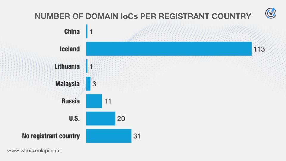 And while 31 of them did not have registrant countries on record, the remaining 149 were registered in six different countries.
