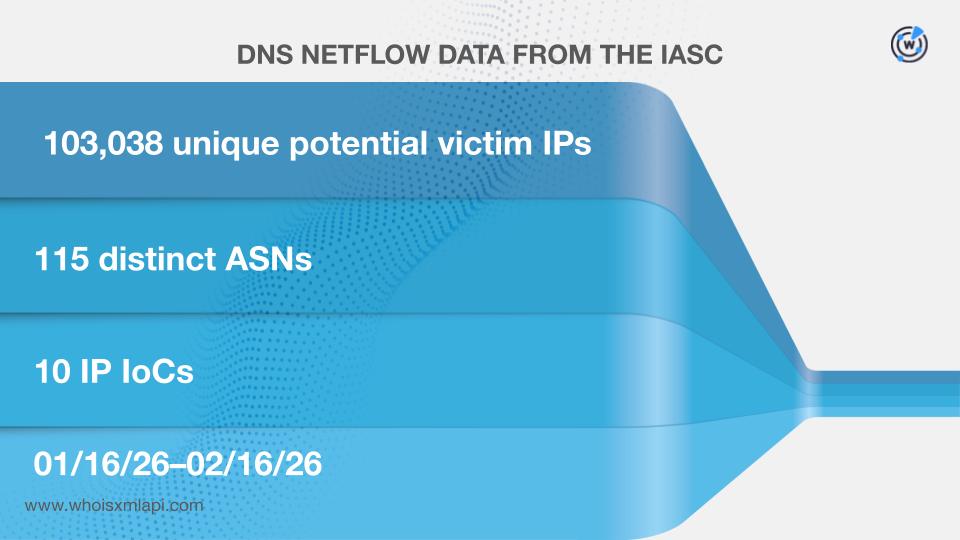 Sample network traffic data from the IASC revealed that 103,038 unique potential victim IP addresses under 115 distinct ASNs communicated with 10 of the IP addresses tagged as IoCs between 16 January and 16 February 2026.