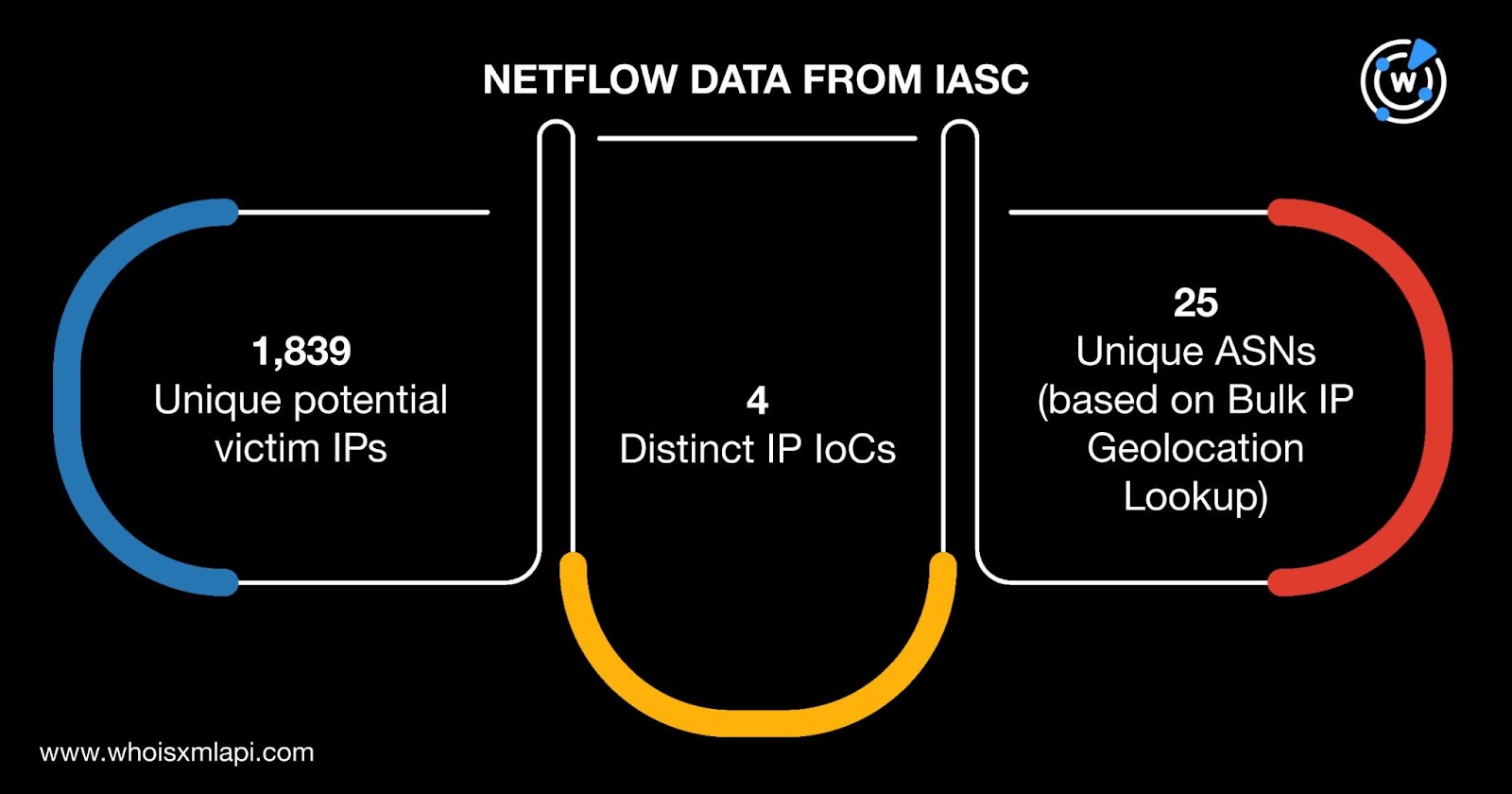 Next, we queried the 31 IP addresses identified as IoCs on Bulk IP Geolocation Lookup and found out that: