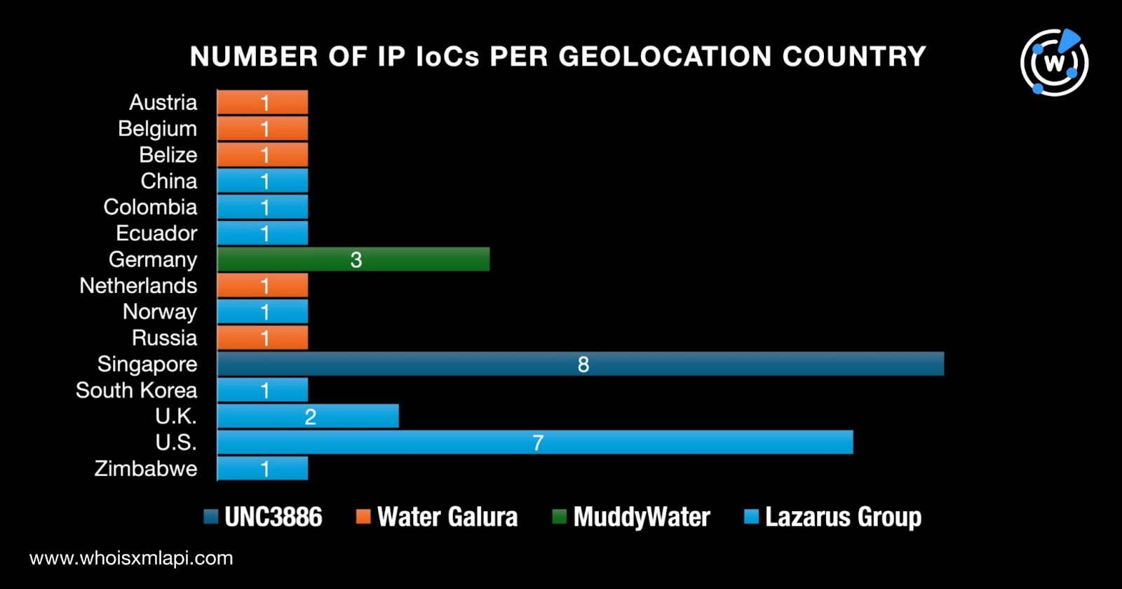 We limited our investigation to these domains, along with the 31 IP addresses tagged as IoCs for four groups (UNC3886, Water Galura, MuddyWater, and the Lazarus Group) and five email addresses for the Medusa Group.
