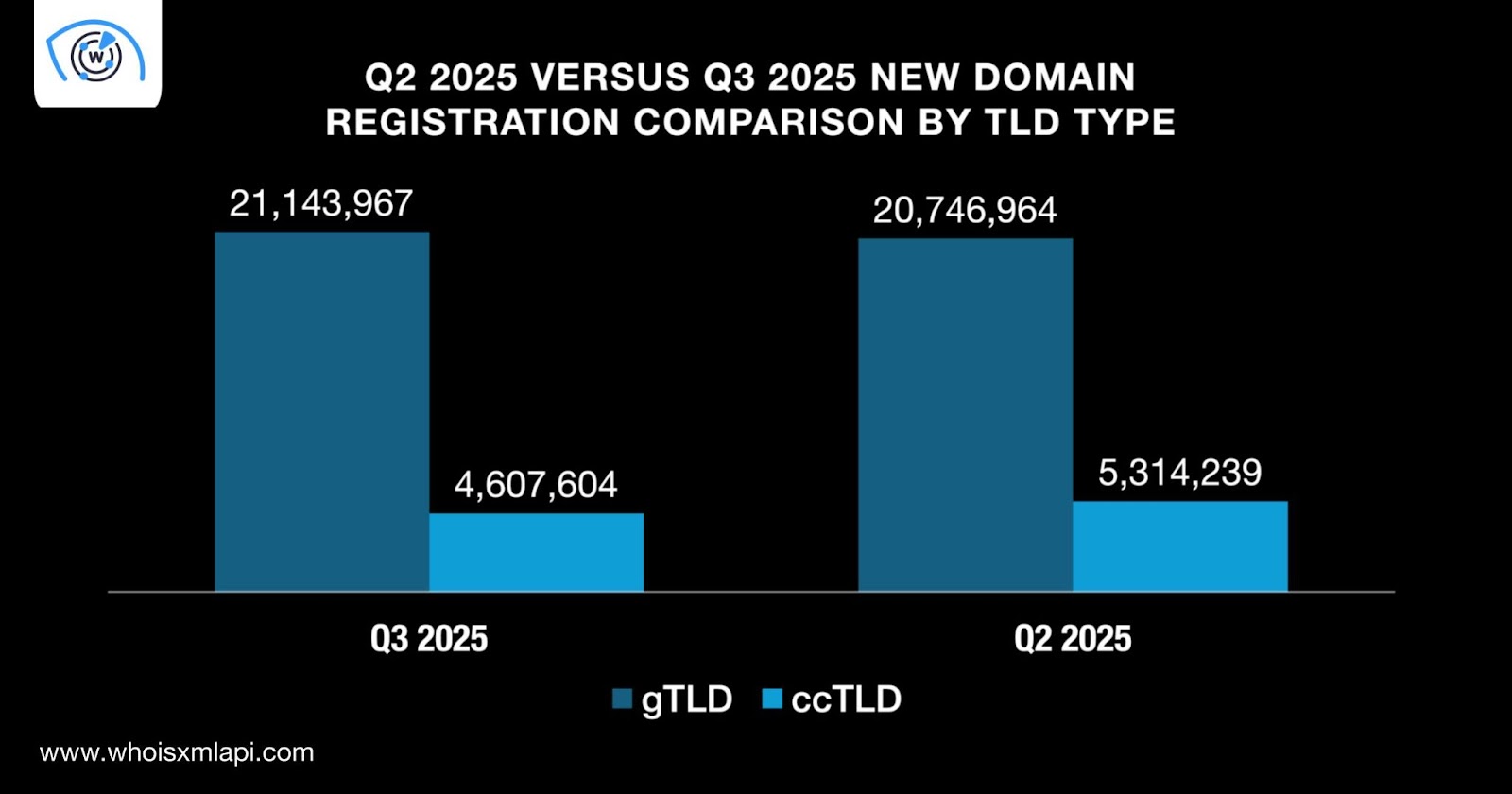 Our latest global domain activity analysis marked a 1.2% decrease in the total NRD registration compared with Q2 2025. While the gTLD domain registration increased by 1.9%, the ccTLD domain registration decreased by a massive 13.3%.