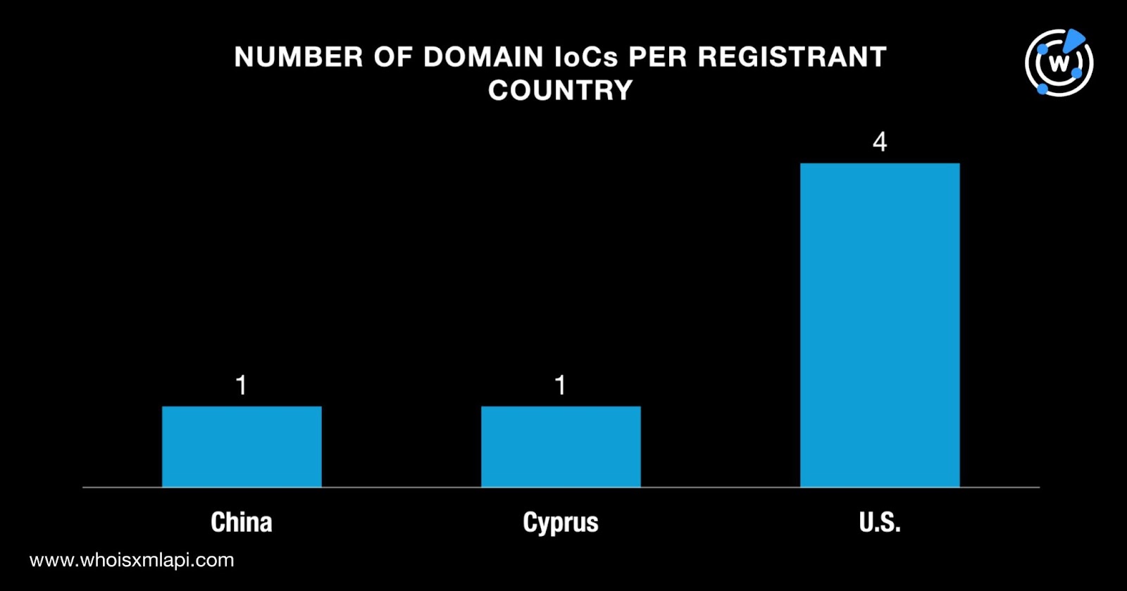 They were registered in three countries topped by the U.S., which accounted for four domains. One domain each, meanwhile, was registered in China and Cyprus.
