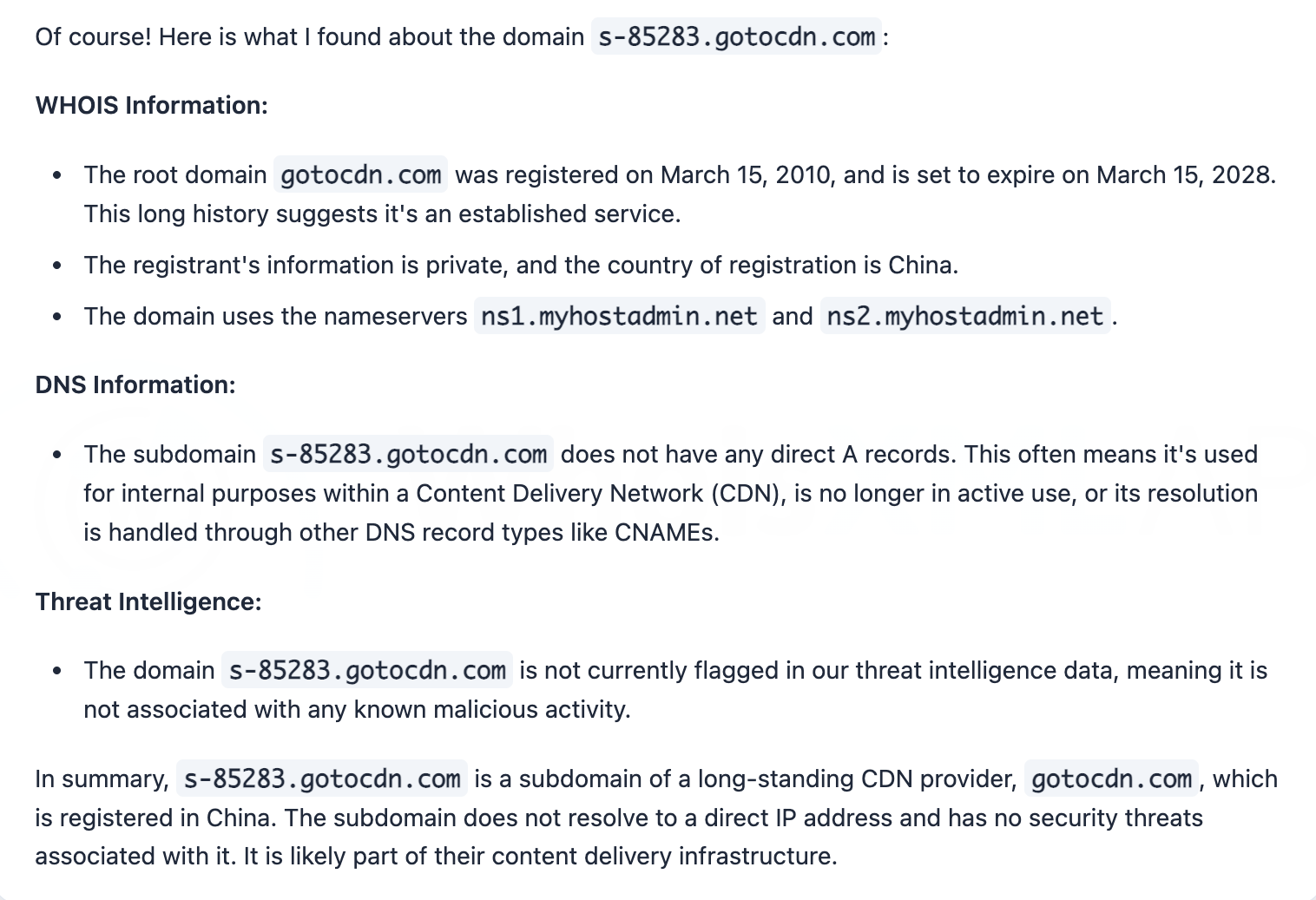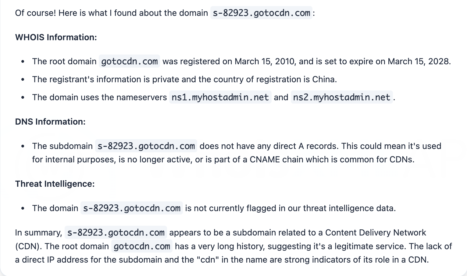 While the root domain of s-82923[.]gotocdn[.]com and s-85283[.]gotocdn[.]com has been around for some time, it is privately registered. The two subdomains are now inactive.