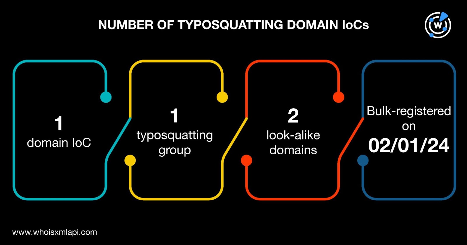 We also searched for the 26 domains identified as IoCs on Typosquatting Data Feed and discovered that one of them—trendings[.]top—was bulk-registered with two look-alikes—trendingg[.]shop and trendingon[.]store—on 1 February 2024.