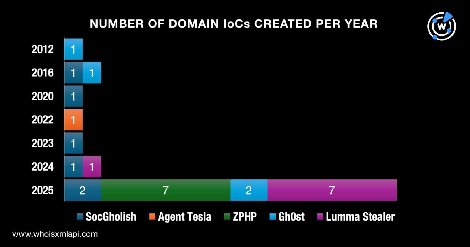 The Center for Internet Security (CIS) just named the top 10 malware of Q3 2025 and identified 31 domains as IoCs for five of them. After weeding out legitimate domains from their list with the help of the WhoisXML API MCP Server, we were left with 26 domains for our study. Take a look at the breakdown below.