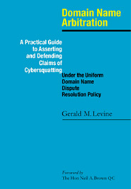 Domain Name Arbitration: Asserting and Defending Claims of Cybersquatting Under the Uniform Domain Name Dispute Resolution Policy, by Gerald M. Levine (Publication date print edition August 1, 2015 (558 pages), e-book edition September 1, 2015.)Legal Corner Press, LLC recently announced the publication of Domain Name Arbitration: Asserting and Defending Claims of Cybersquatting Under the Uniform Domain Name Dispute Resolution Policy, authored by Gerald M. Levine, intellectual property attorney, with Foreword by Hon. Neil A. Brown QC, former member of the Australian Parliament and a UDRP panelist.
