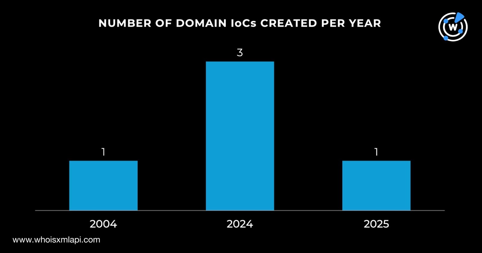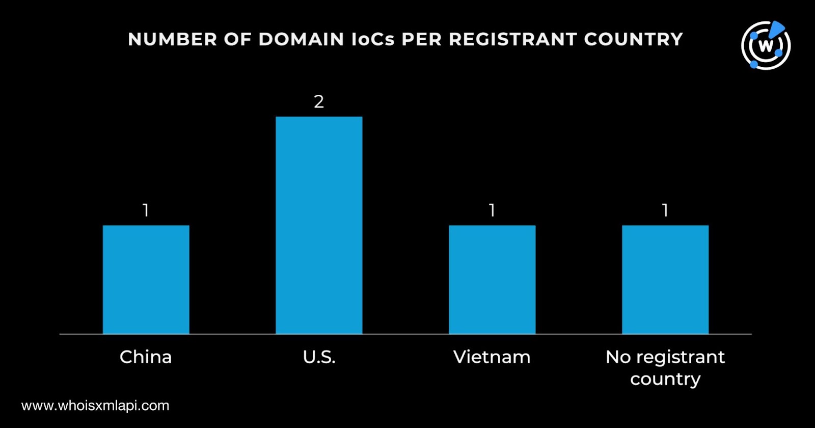 While one domain did not have a registrant country on record, the remaining four were registered in three countries—one in China, two in the U.S., and one in Vietnam.