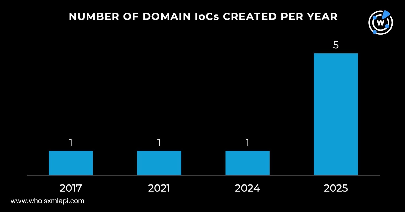 The researchers identified nine domains as indicators of compromise (IoCs), which WhoisXML API further analyzed. Our deep dive led to these discoveries: