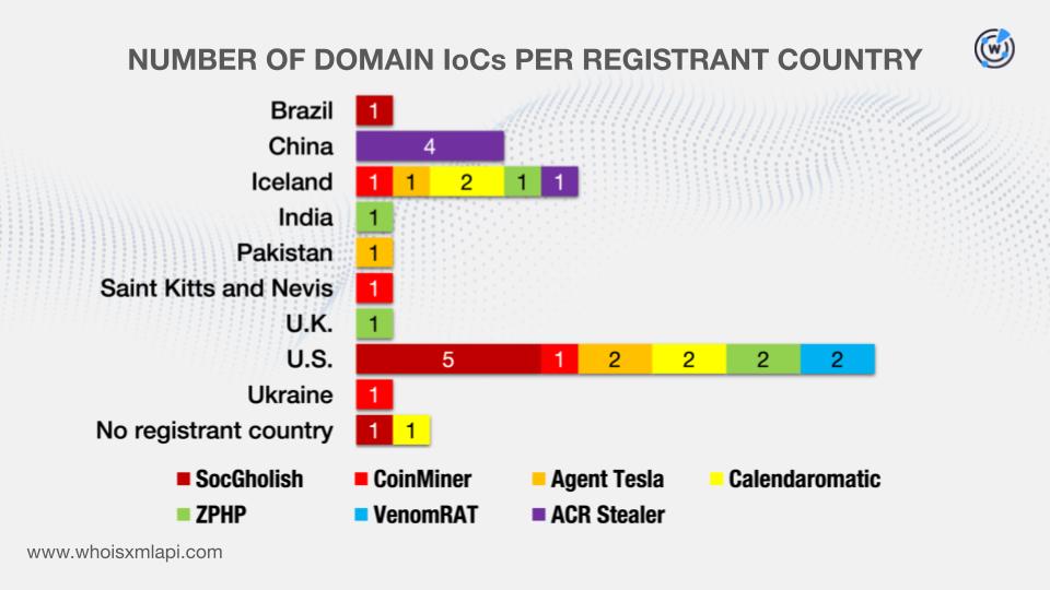 Next, we queried the 32 domains named as IoCs on WHOIS API and discovered that:
