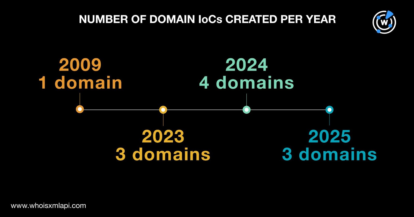 Before embarking on our IoC list expansion, we sought to uncover more information about the attack IoCs first. To that end, we queried the 13 domains identified as IoCs on Bulk WHOIS API and found that only 11 of them had current WHOIS records. We also discovered that: