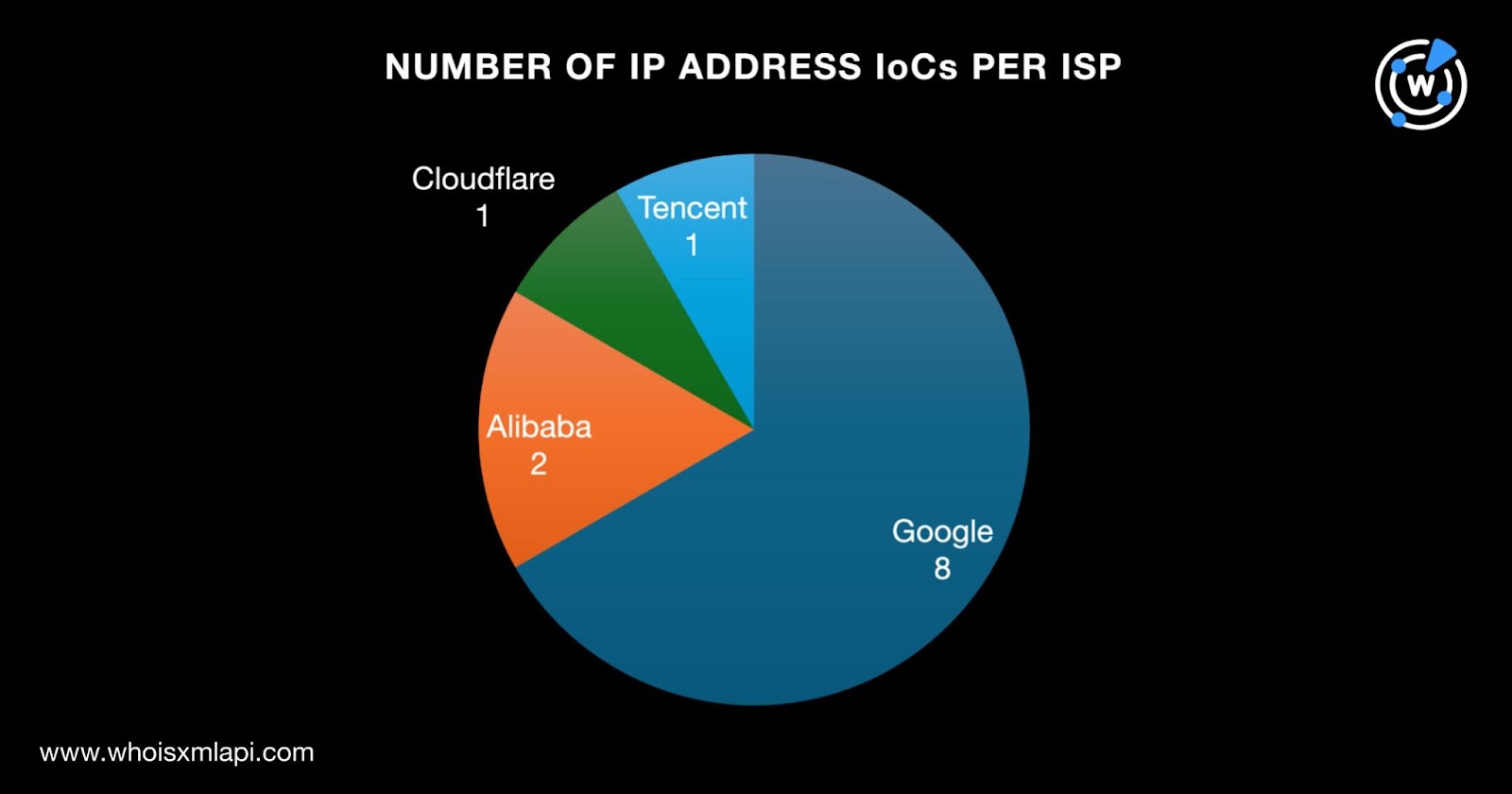 They were administered by four ISPs led by Google, which accounted for eight IP addresses. Alibaba came in second place with two IP addresses. Finally, one IP address each was administered by Cloudflare and Tencent.